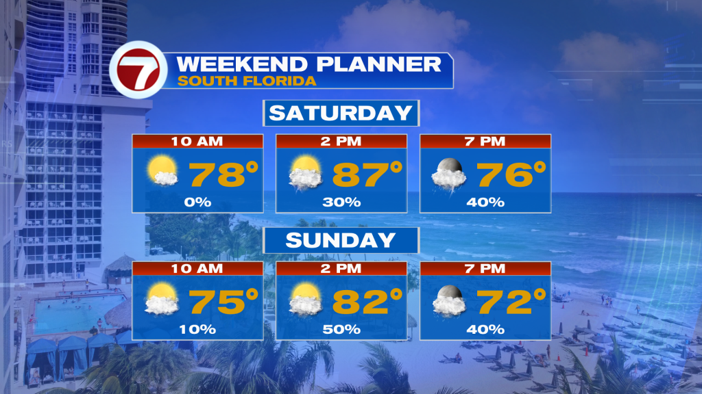 Happy Saturday, South Florida! This weekend looks warm and humid with high temperatures in the 80s with a daily chance of showers and storms. Today...