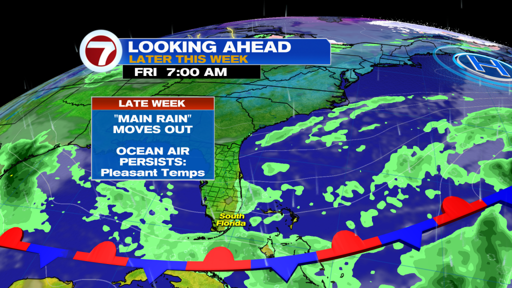 Even though the boundary is forecast to be south of us during the late week, we’ll still have periods of lighter rain showers. They’ll probably be more temporary, due to the strong breeze flowing off the ocean. On a more positive note, temperatures will have us feeling fine! It’ll be pleasant with the ocean air over us and only modest warmth and humidity.